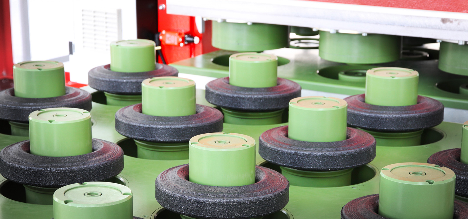 The technology to produce tire-derived moulded goods has been on the market for more than 20 years and it is thus consolidated. Its maturity together with the relatively low investment level makes it a technology accessible to small companies as well. But how does it work? The recycled rubber crumb is mixed with a polyurethane binder coming in liquid form, which is usually around 8% to 10% of the weight of the rubber granulate. In case the final product needs to have a color other than black, color may be added to the mix. A small amount of water is also inserted because the humidity is the real trigger for the binder to start reacting. The mix is then unloaded into a press equipped with a mould and subject to constant pressure where it takes the desired shape.